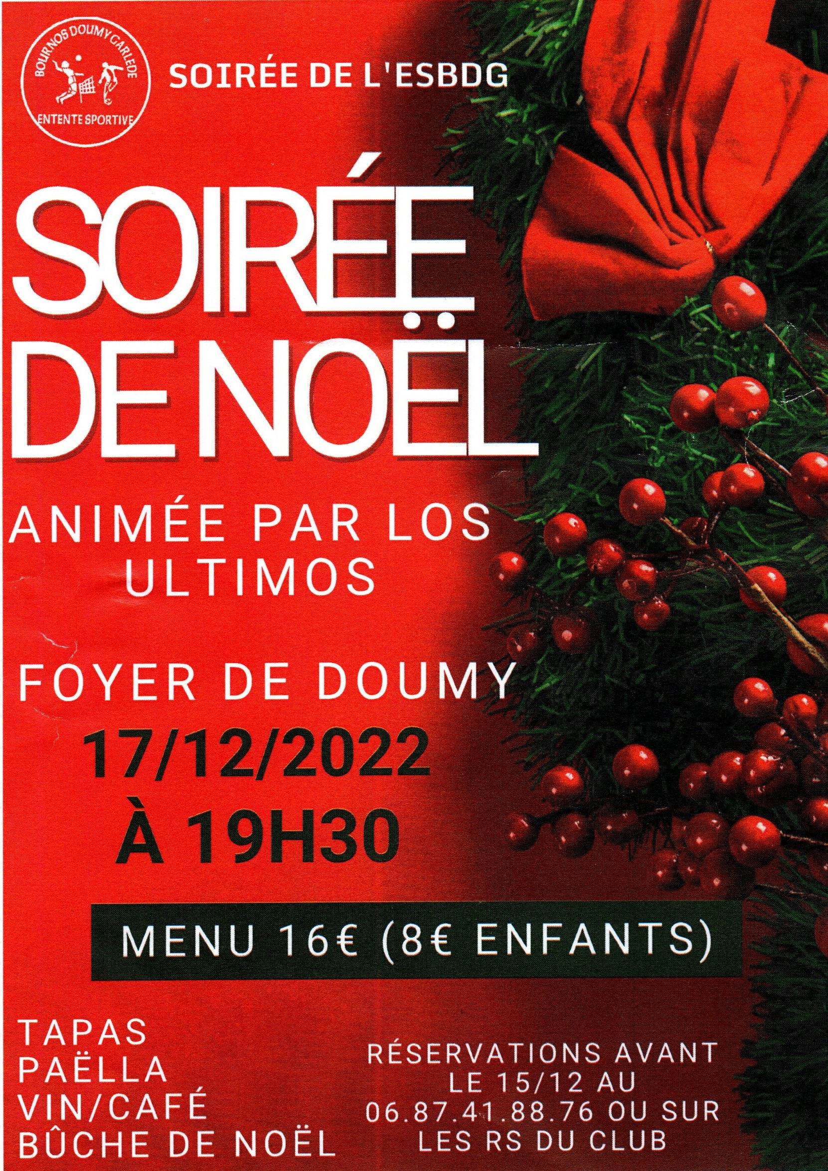Le club de l'ESBDG se met aux couleurs de Noël pour vous proposer de venir passer une belle soirée de Noël le samedi 17 décembre prochain.
