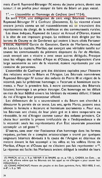En avril 1154, la puissance des seigneurs devenus barons se révèla à nouveau lorsqu'un délégation de 120 Béarnais conduite par les évêques de Lescar et d'Oloron vint faire acte d’allégeance à Canfranc, au roi d'Aragon... La noblesse était dirigée par les barons de Doumy et de Gerderest ....
