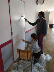 Un préau rajeuni, des bancs repeints, la création d'une marrelle, de soubassements que les petits pourront décorer,