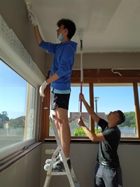 Le local buvette du foyer remis en couleurs sans oublier la peinture des portails du logement locatif et les différentes retouches des murs ou portes qui n'ont pas échapées à nos artistes.
