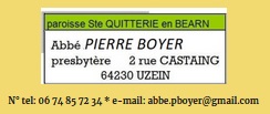 - Abbé Pierre Boyer : 06 74 85 72 34